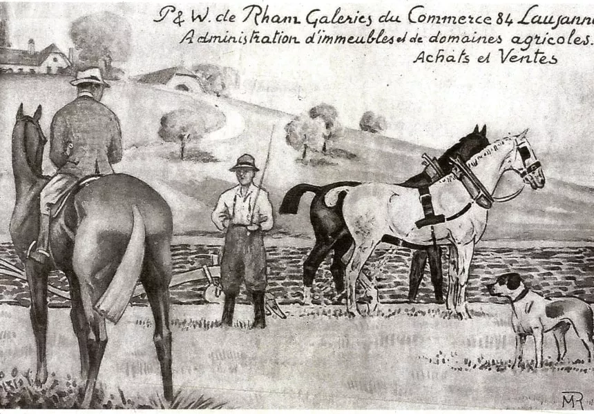 Création de la régie par William de Rham 1er du nom sise à la rue de bourg. Il quitte son domaine agricole dans la campagne vaudoise suite au développement ferroviaire.