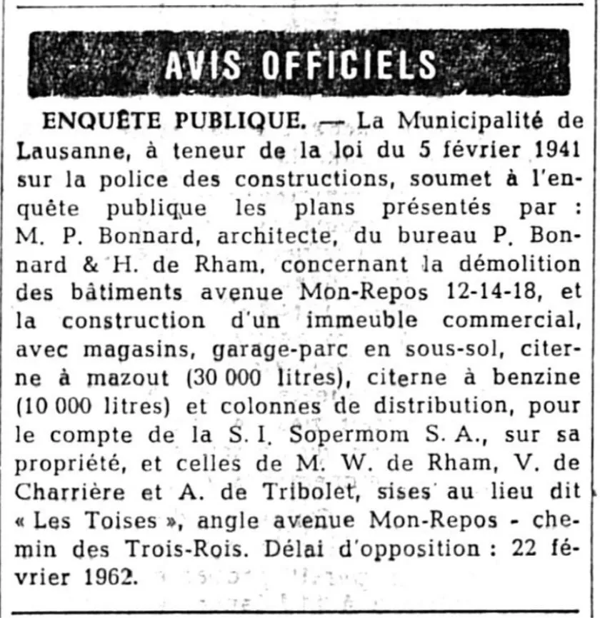 Arrivée de Pierre de Rham aux commandes de l'entreprise. Celui-ci s'installe aux galeries du commerce (actuel conservatoire de Lausanne).