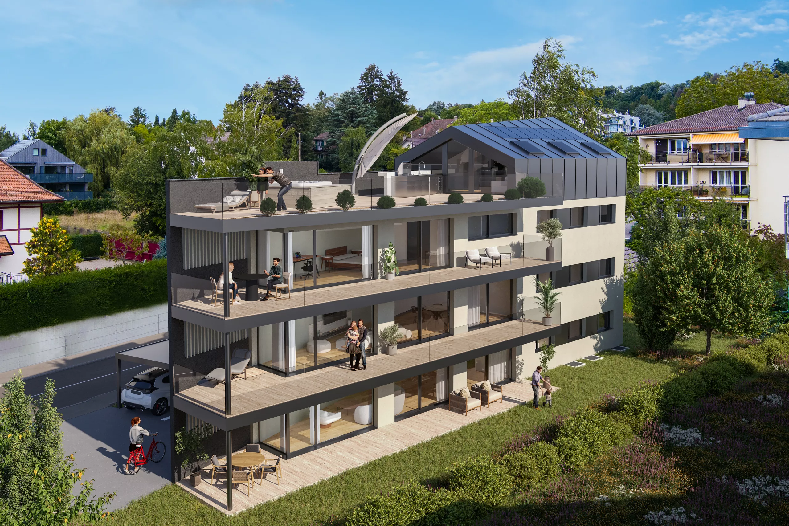 Trinity vous propose trois appartements en PPE dans une résidence contemporaine élégamment intégrée à son environnement. Dotée de panneaux solaires, elle allie confort, design et performance énergétique.