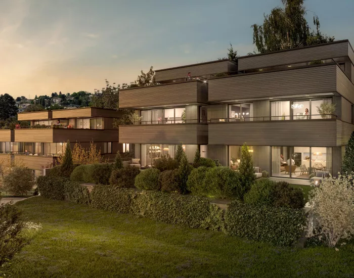 Cet immeuble à taille humaine de seulement 5 logements offre un cadre de vie exclusif et serein. Il se compose d’un appartement de 2.5 pièces, de deux appartements de 3.5 pièces, d’un 4.5 pièces et d’un spacieux duplex de 5.5 pièces. La plupart des appartements bénéficient de leur propre espace extérieur, que ce soit un balcon, une terrasse ou un grand jardin.