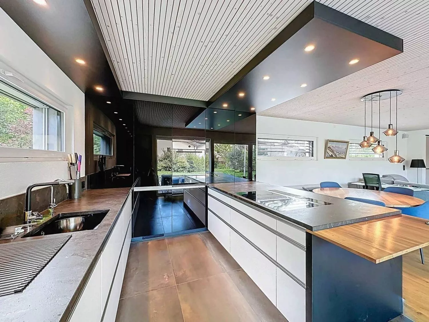 Implantée sur une parcelle verdoyante de 1'001 m², elle se compose de 6,5 pièces harmonieusement réparties sur deux niveaux. Construite en 1955, la maison a bénéficié d'une rénovation complète ainsi que d'une extension en 2020, tout en préservant son style d'origine.